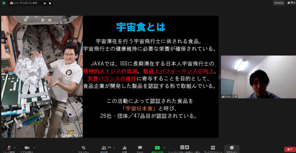 「宇宙服と宇宙食の進化について考える。」クラーク記念国際高等学校JAXA授業連携を全国オンラインで実施しました。