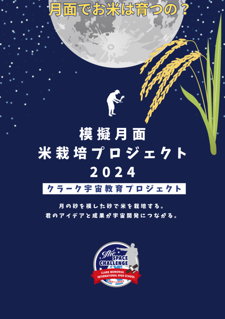 クラーク宇宙教育プロジェクトでは、月面でお米を育てる疑似実験を今年から全キャンパスで行っています。月の表面を覆ている、レゴリスという粒子の細かい砂と同じような細かさの砂を使って、バケツで稲を育てています。5月にパールライス様、ホクレン様の協力を得て、お米の栽培の仕方をオンラインレクチャーいただき、ホクレン様から種もみの提供をいただいて、全キャンパスでバケツ稲栽培を始めました。クラーク国際は全国にキャンパスがあるので、こういった実験も一挙に広範囲で行えるメリットがあります。各キャンパスから続々と中間報告が上がっています。成功しているキャンパス、うまくいっていないキャンパスとありますが、すべてが経験となり、知恵につながっていく実験です。年明け2月には、ポスター展示という形で各キャンパスの取り組み内容と、実験結果、分析結果が発表される予定です。